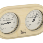 Deze sauna thermometer en hygrometer combinatie is uitgevoerd in Aspen hout en biedt een duidelijke weergave van zowel temperatuur als luchtvochtigheid. Het natuurlijke materiaal zorgt voor een rustige uitstraling die goed aansluit bij sauna interieurs.
